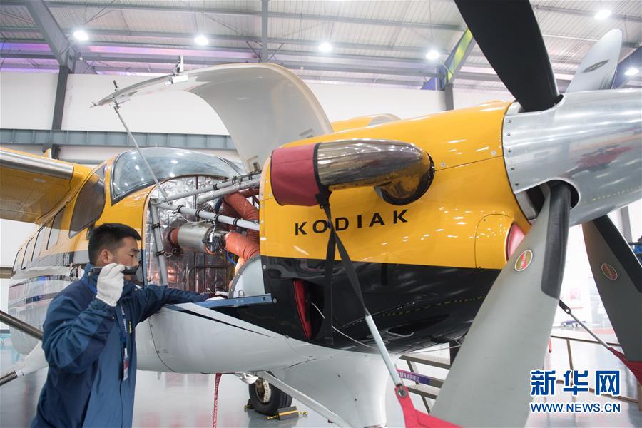 12月20日,在建德市航空小鎮(zhèn),工作人員對(duì)一架大棕熊100系列飛機(jī)進(jìn)行日常維護(hù)。 當(dāng)日,浙江省建德市航空小鎮(zhèn)通航制造板塊首架飛機(jī)下線交付。此次下線交付的大棕熊100系列Ⅱ飛機(jī)由美國(guó)Quest飛機(jī)制造公司出品,有望在通用航空領(lǐng)域發(fā)揮作用。建德市自2016年開(kāi)始航空小鎮(zhèn)創(chuàng)建,2017年被列入全國(guó)第二批特色小鎮(zhèn)名單。 新華社記者翁忻旸攝
