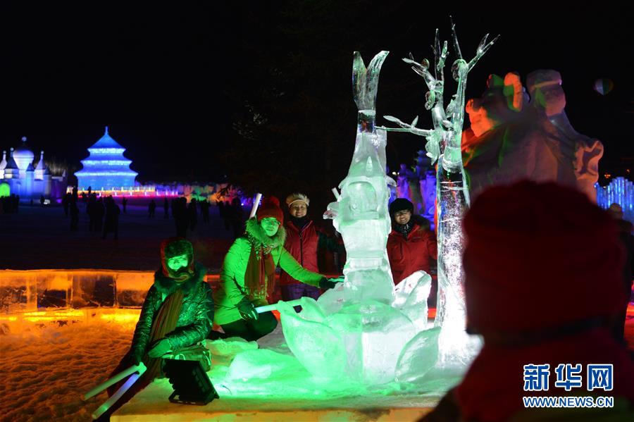 12月21日,游客在冰雪節(jié)開幕式上參觀冰雕。新華社記者鄒予攝