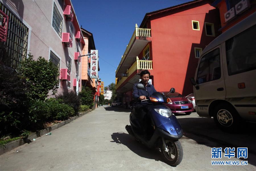 舒港發(fā)騎著電動(dòng)車行進(jìn)在村子里(10月28日攝)。