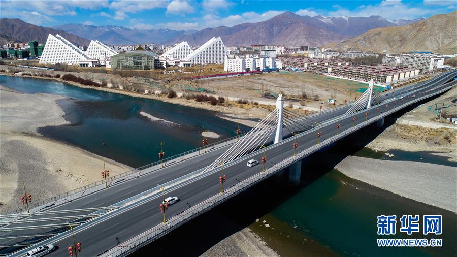這是橫跨拉薩河的新建環(huán)城路納金大橋段(3月4日無人機(jī)拍攝)。  新華社記者 晉美多吉 攝