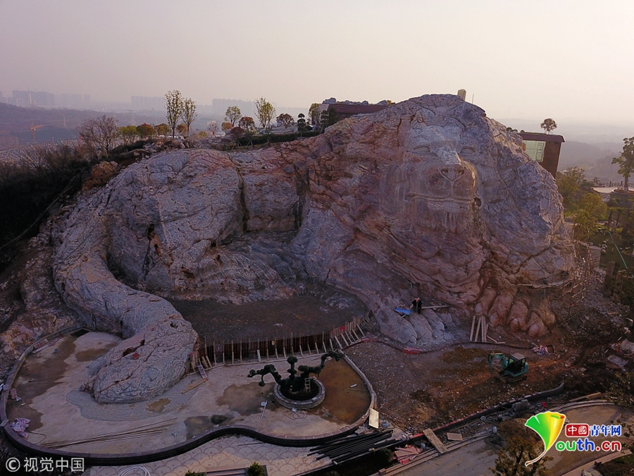 廢棄工地建蜂巢酒店 百名工人用時半年雕出巨型山體石獅