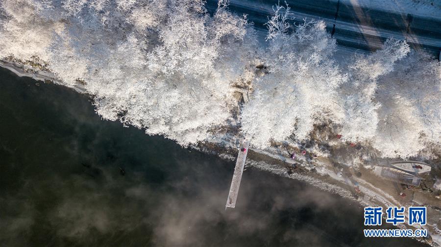 這是在吉林省吉林市豐滿區(qū)吉豐東路松花江畔拍攝的霧凇美景(12月12日無人機(jī)拍攝)。 新華社記者張楠攝