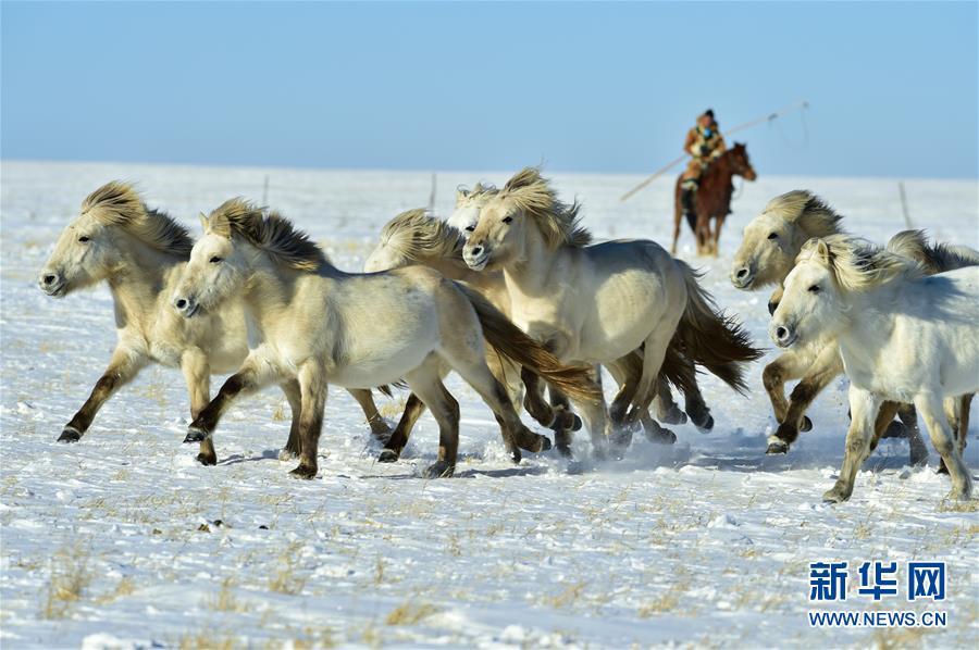 1月8日,牧民進(jìn)行套馬表演。 時下正值草原冬季旅游旺季,內(nèi)蒙古自治區(qū)西烏珠穆沁旗的牧民們在雪原上一展身手,為游客展現(xiàn)獨(dú)特的民族風(fēng)情。 新華社記者 鄒予 攝