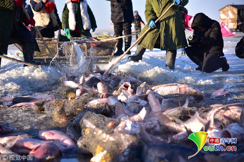 2018年12月26日,吉林松原,查干湖迎來(lái)了“紅網(wǎng)”,單網(wǎng)捕撈約30萬(wàn)斤。