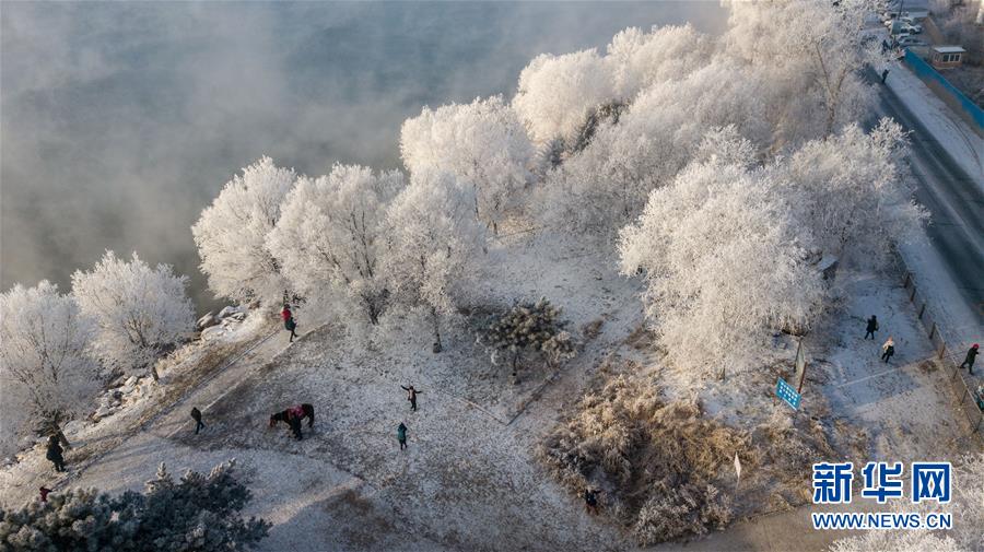當(dāng)日,吉林省吉林市出現(xiàn)霧凇景觀,松花江畔的樹(shù)木仿佛披上了銀色盛裝。