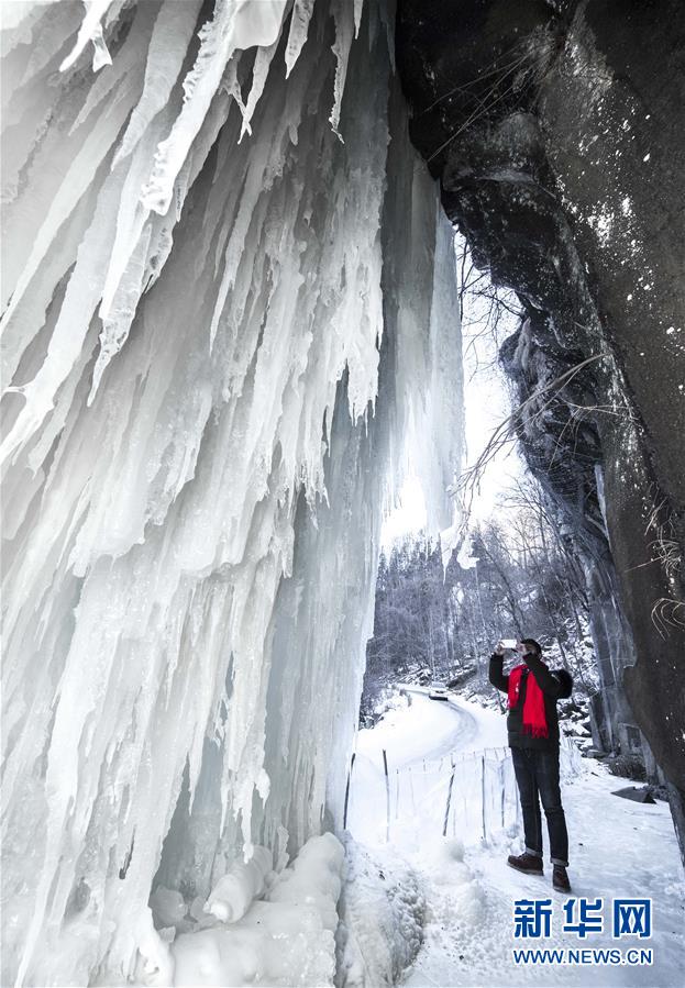 1月9日,游客在云臺(tái)山景區(qū)拍攝冰瀑景觀。 近日,受降溫影響,位于河南省焦作市的云臺(tái)山景區(qū)出現(xiàn)冰瀑景觀,奇特壯美。 新華社記者 馮大鵬 攝