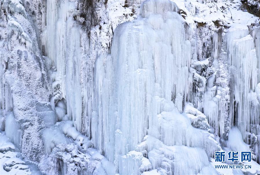 1月9日在云臺(tái)山景區(qū)拍攝的冰瀑景觀。 近日,受降溫影響,位于河南省焦作市的云臺(tái)山景區(qū)出現(xiàn)冰瀑景觀,奇特壯美。 新華社記者 李嘉南 攝
