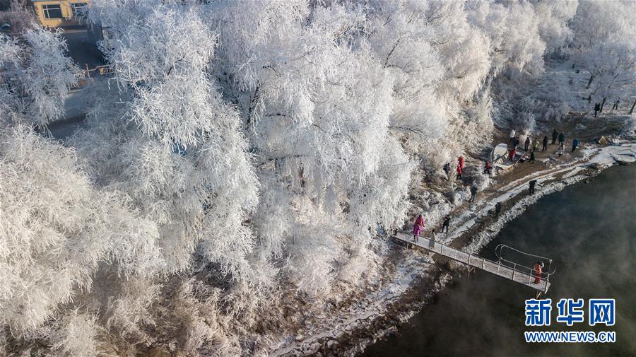 這是在吉林省吉林市豐滿區(qū)吉豐東路松花江畔拍攝的霧凇美景(12月12日無人機拍攝)。 新華社記者張楠攝