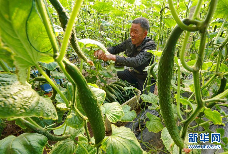 1月10日,唐山海港經(jīng)濟開發(fā)區(qū)王灘鎮(zhèn)東高村農(nóng)民在大棚內(nèi)采摘黃瓜。 河北省唐山海港經(jīng)濟開發(fā)區(qū)采取“合作社+產(chǎn)業(yè)基地+農(nóng)戶”模式,扶持當?shù)胤N植戶規(guī)?;⒐叩忍厣a(chǎn)業(yè)生產(chǎn)基地,帶動農(nóng)民增收致富。 新華社記者楊世堯攝