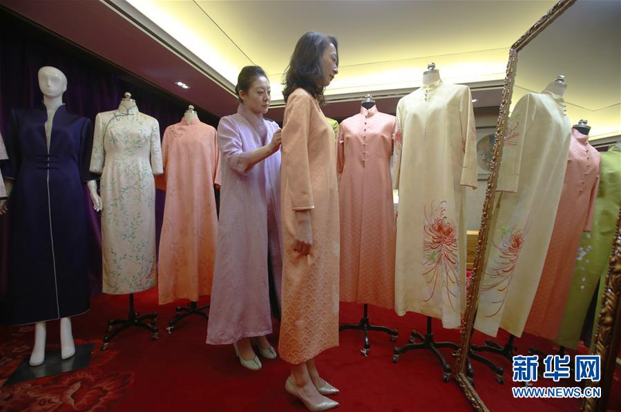 1月12日,在北京“碧泓云想”服裝設計工作室,高定服裝設計師畢紅在為中式服裝制作刺繡紋樣。畢紅設計的中式服裝以棉、麻、真絲等面料為主。春節(jié)來臨,其團隊加班加點為顧客趕制中式服裝。
