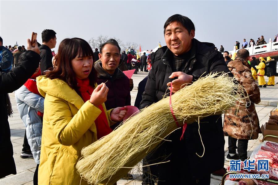 當日,河南省魯山縣觀音寺鄉(xiāng)西桐樹莊村土特產(chǎn)年貨展銷活動在河南魯山阿婆寨風景區(qū)門口舉行。近年來,依托鄉(xiāng)村旅游的不斷發(fā)展,不少貧困山村特產(chǎn)走出大山。