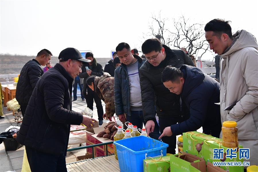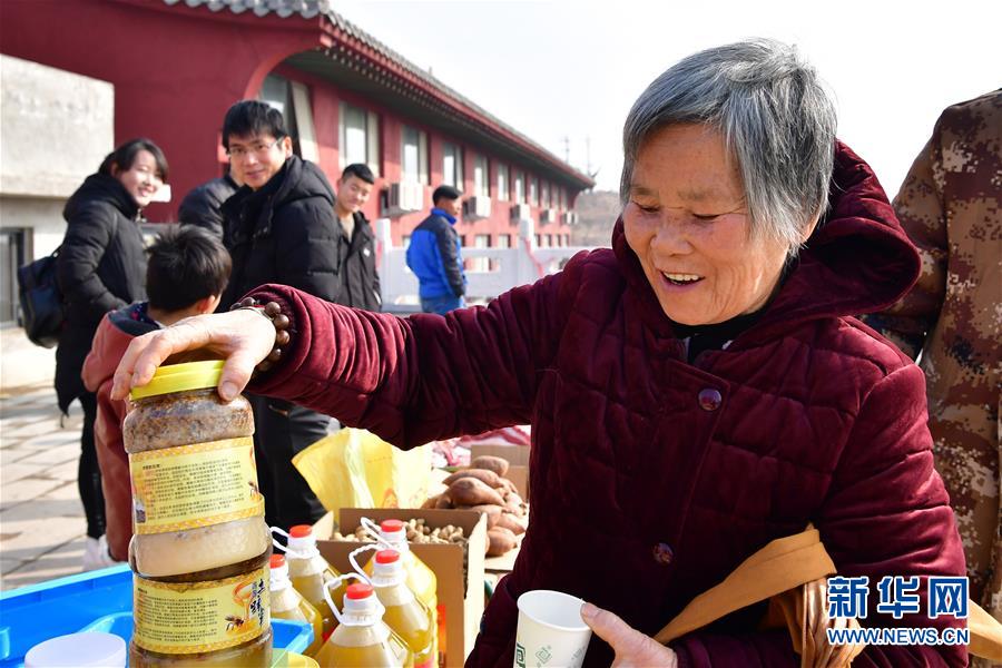 當(dāng)日,河南省魯山縣觀音寺鄉(xiāng)西桐樹莊村土特產(chǎn)年貨展銷活動(dòng)在河南魯山阿婆寨風(fēng)景區(qū)門口舉行。近年來,依托鄉(xiāng)村旅游的不斷發(fā)展,不少貧困山村特產(chǎn)走出大山。
