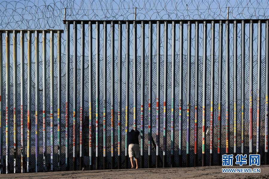 1月10日,在墨西哥邊境城市蒂華納,一名男子在美墨邊境墻邊停留。新華社記者 辛悅衛(wèi) 攝