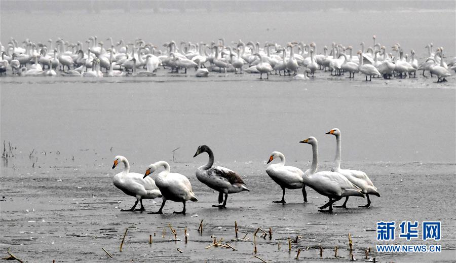 1月4日,白天鵝在三門峽黃河濕地棲息。 新華社記者朱祥攝