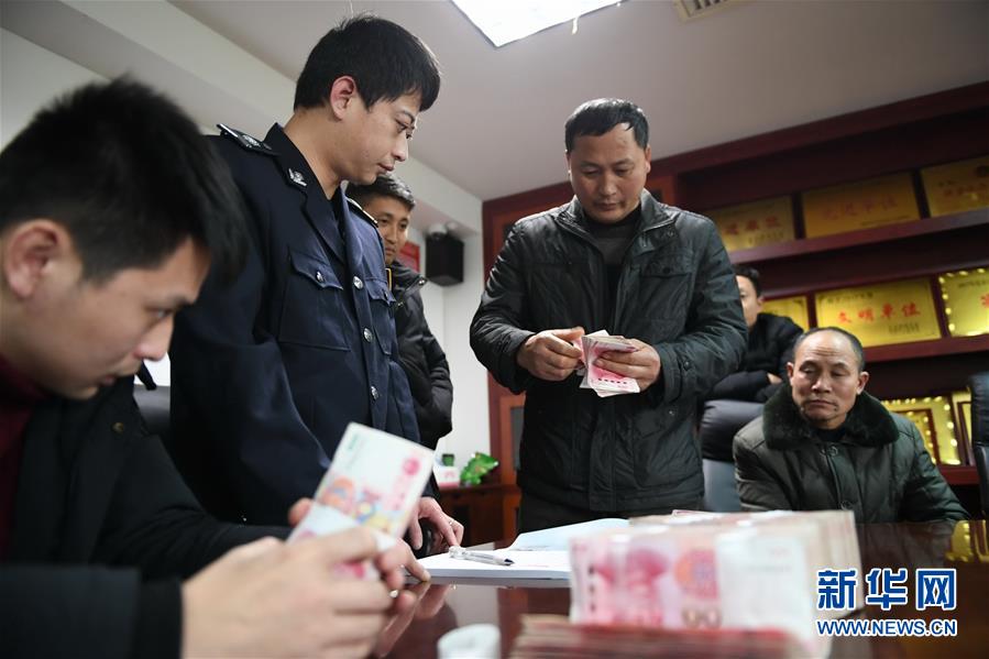 1月14日,農(nóng)民工領取被拖欠的工資。