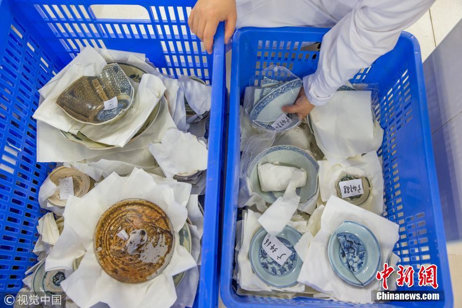 廣東省博物館文物保護(hù)科技中心出水文物保護(hù)實(shí)驗(yàn)室里,修復(fù)后的出水瓷器。譚慶駒 攝 圖片來(lái)源:視覺(jué)中國(guó)