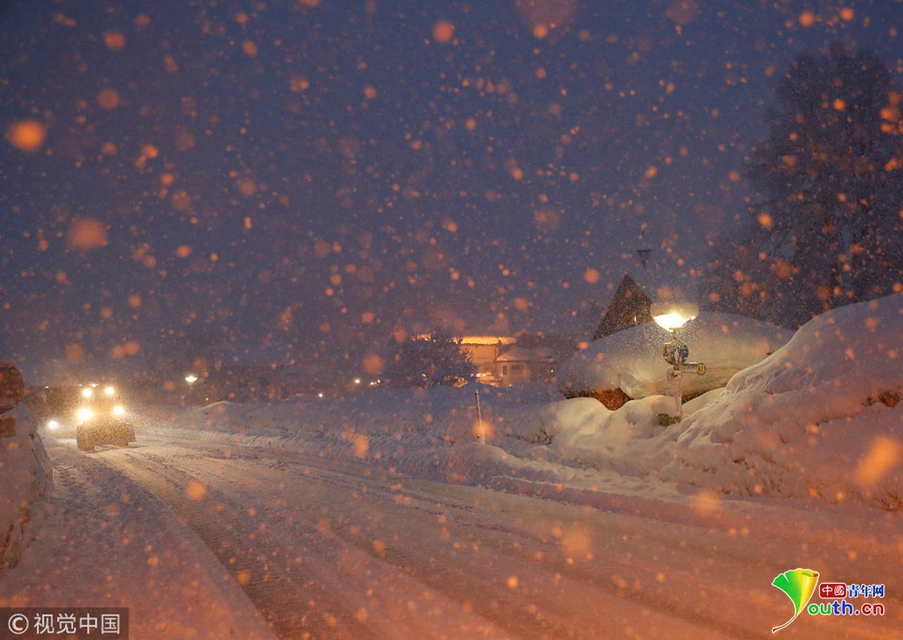 奧地利暴風(fēng)雪持續(xù) 公交車(chē)站被積雪掩埋