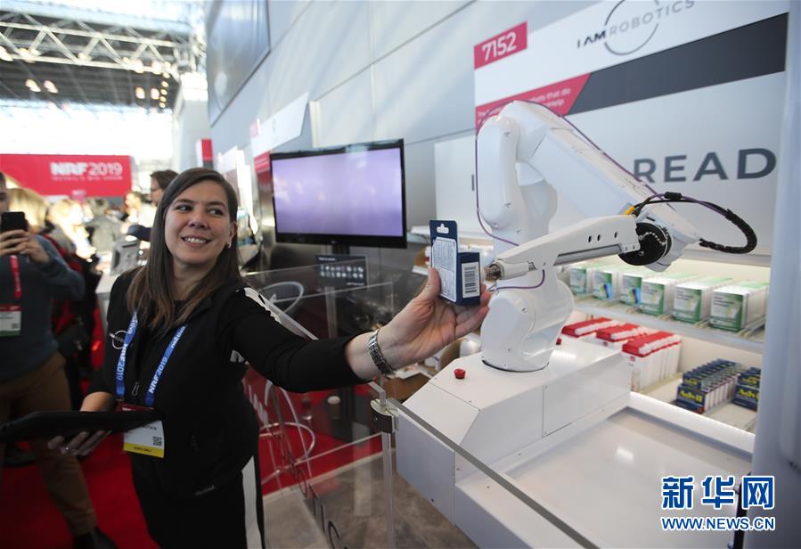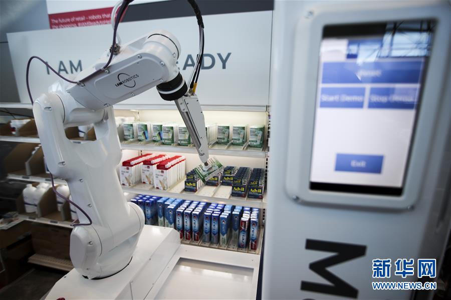 1月14日,在美國(guó)紐約舉行的全國(guó)零售商聯(lián)合會(huì)年度大會(huì)的“創(chuàng)新實(shí)驗(yàn)室”展廳,自動(dòng)取貨機(jī)器人根據(jù)顧客的要求抓取商品。 美國(guó)全國(guó)零售商聯(lián)合會(huì)年度大會(huì)于1月13日至15日在紐約舉行,許多來自世界各地的展商帶來使用新技術(shù)開發(fā)出的軟硬件產(chǎn)品,向觀眾展示未來零售業(yè)的新愿景。 新華社記者 王迎 攝