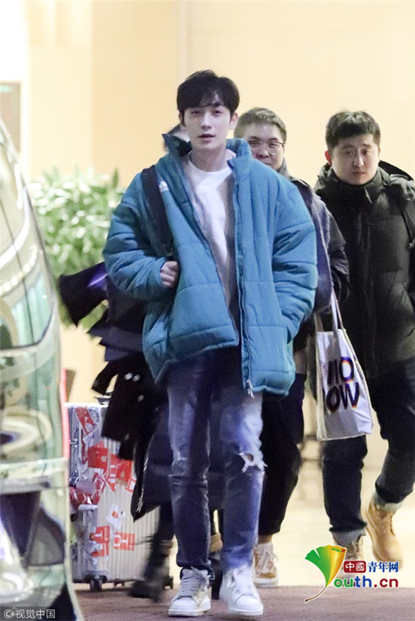 1月15日,北京,朱一龍現(xiàn)身機場。他穿綠色棉襖一路插兜保暖,搭配破洞褲潮范兒十足長腿搶鏡,打扮簡單毫無男神包袱,看鏡頭還一臉呆萌,但氣質(zhì)仍然出眾。