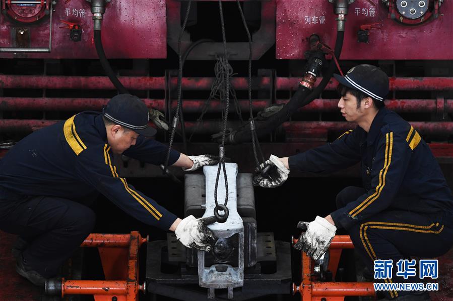 1月16日,重慶機務(wù)段職工在對機車車鉤進(jìn)行檢修。 臨近春運,為確保春運旅客和貨物列車運輸安全,中國鐵路成都局集團有限公司重慶機務(wù)段對全段機車進(jìn)行專項檢查、整修,為即將到來的春運做準(zhǔn)備。 新華社記者王全超攝