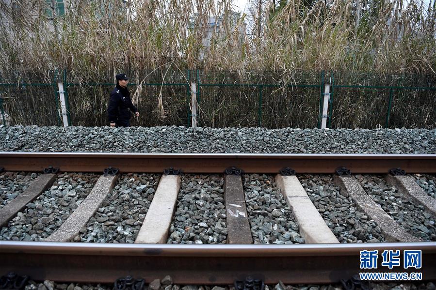 1月16日,汪茂才一早搭乘鐵路通勤車前往十公里外的三昆站,然后往回徒步巡查鐵路線。 今年52歲的汪茂才是合肥鐵路公安處黃山站派出所歙縣警務室的一名線路民警,他所在的警務室負責皖南山區(qū)皖贛鐵路線約80公里范圍內(nèi)的線路安全。從警30年來,線路巡查、鐵路安全知識宣傳等是汪茂才的日常工作。多年來的徒步巡線,讓汪茂才練就了一雙快腿,十公里的路,汪茂才兩個小時就能走完。 汪茂才負責的鐵路沿線周邊村莊較多,很多房子都是沿鐵路線而建,有些村民為了圖方便,違規(guī)穿越鐵路線。加強對鐵路沿線居民的安全宣傳教育,成為汪茂才的一項重要工作,沿線村民的安全意識也越來越高。 對汪茂才這樣的線路民警來說,大多數(shù)時候都是“獨行俠”,“當線路民警就要耐得住寂寞,守得住孤獨,與大山為伴,與線路為友,盡己所能,為鐵路安全運行保駕護航?!蓖裘耪f。 新華社記者劉軍喜攝