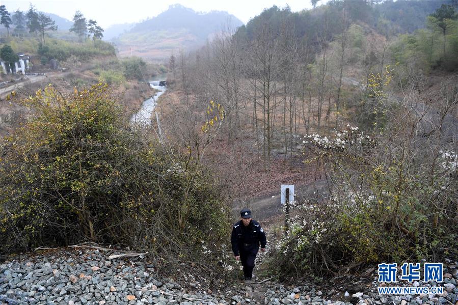 1月16日,汪茂才在巡線途中。 今年52歲的汪茂才是合肥鐵路公安處黃山站派出所歙縣警務室的一名線路民警,他所在的警務室負責皖南山區(qū)皖贛鐵路線約80公里范圍內(nèi)的線路安全。從警30年來,線路巡查、鐵路安全知識宣傳等是汪茂才的日常工作。多年來的徒步巡線,讓汪茂才練就了一雙快腿,十公里的路,汪茂才兩個小時就能走完。 汪茂才負責的鐵路沿線周邊村莊較多,很多房子都是沿鐵路線而建,有些村民為了圖方便,違規(guī)穿越鐵路線。加強對鐵路沿線居民的安全宣傳教育,成為汪茂才的一項重要工作,沿線村民的安全意識也越來越高。 對汪茂才這樣的線路民警來說,大多數(shù)時候都是“獨行俠”,“當線路民警就要耐得住寂寞,守得住孤獨,與大山為伴,與線路為友,盡己所能,為鐵路安全運行保駕護航?!蓖裘耪f。 新華社記者劉軍喜攝