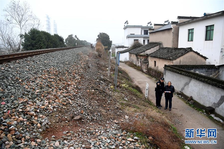 1月16日,汪茂才向鐵路沿線村民宣傳鐵路安全知識。 今年52歲的汪茂才是合肥鐵路公安處黃山站派出所歙縣警務室的一名線路民警,他所在的警務室負責皖南山區(qū)皖贛鐵路線約80公里范圍內(nèi)的線路安全。從警30年來,線路巡查、鐵路安全知識宣傳等是汪茂才的日常工作。多年來的徒步巡線,讓汪茂才練就了一雙快腿,十公里的路,汪茂才兩個小時就能走完。 汪茂才負責的鐵路沿線周邊村莊較多,很多房子都是沿鐵路線而建,有些村民為了圖方便,違規(guī)穿越鐵路線。加強對鐵路沿線居民的安全宣傳教育,成為汪茂才的一項重要工作,沿線村民的安全意識也越來越高。 對汪茂才這樣的線路民警來說,大多數(shù)時候都是“獨行俠”,“當線路民警就要耐得住寂寞,守得住孤獨,與大山為伴,與線路為友,盡己所能,為鐵路安全運行保駕護航?!蓖裘耪f。 新華社記者劉軍喜攝