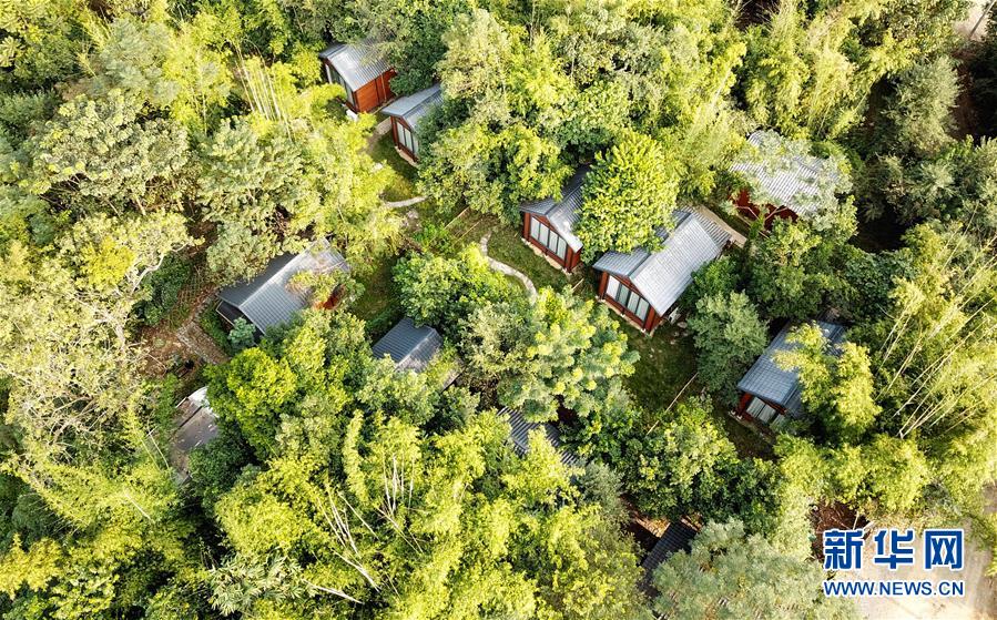 廣東清遠(yuǎn)英德市九龍鎮(zhèn)活石水村的鄉(xiāng)村民宿(2018年11月14日無(wú)人機(jī)拍攝)。