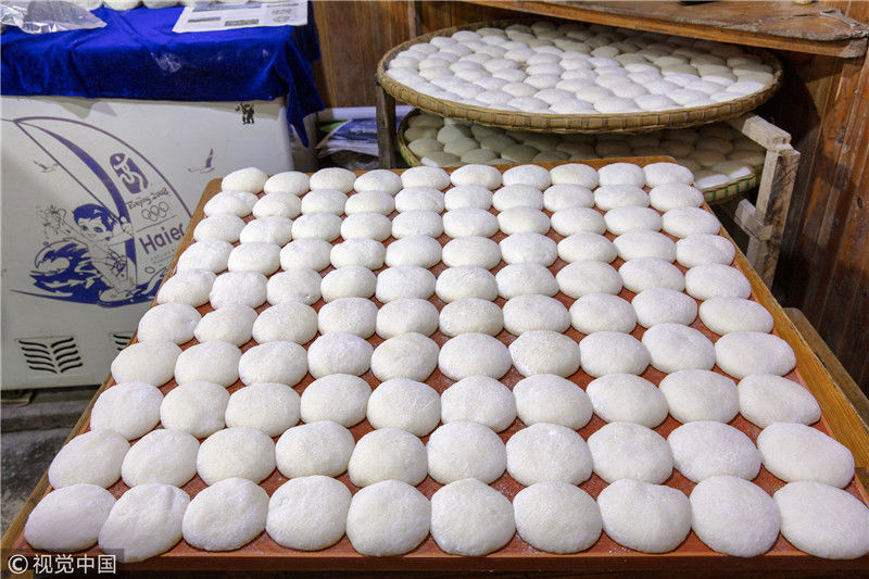2019年1月26日,重慶中山古鎮(zhèn),880桌“千米長(zhǎng)宴”5萬人共品年味。街坊們?cè)陬^天就開始準(zhǔn)備各種菜肴與小吃。
