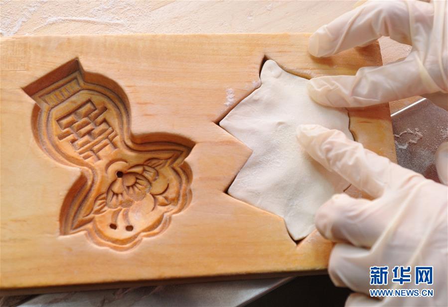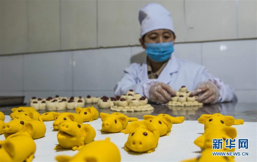 1月31日,河北黃驊市一家面花作坊的工人用面花模子制作面花。 河北黃驊市有著過年蒸面花的習俗。春節(jié)前夕,當?shù)孛婊ㄖ谱鞴S加班加點制作面花,供應春節(jié)市場。 新華社記者牟宇攝