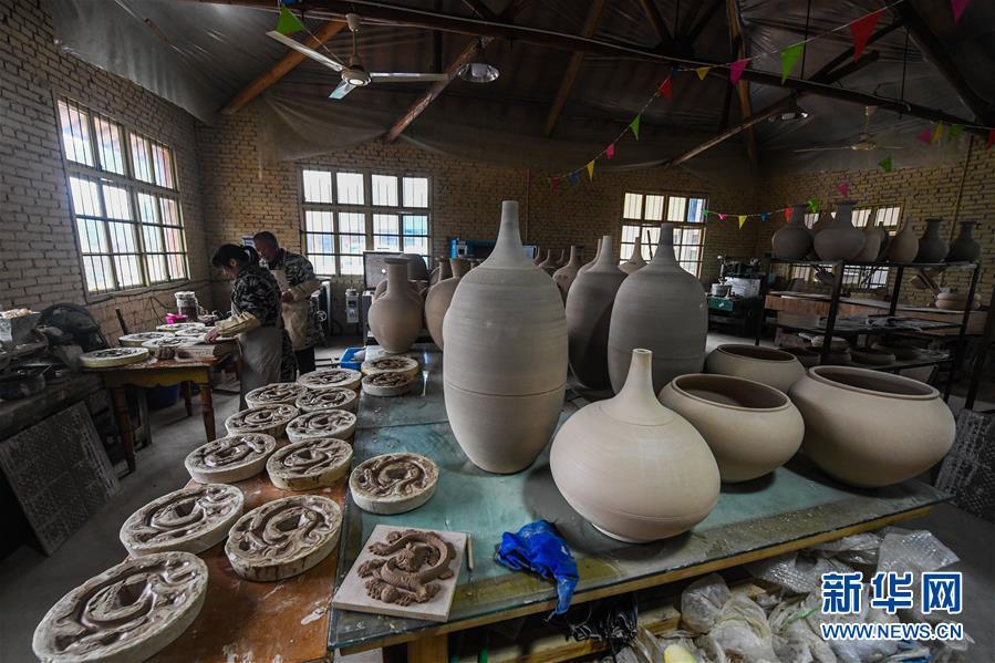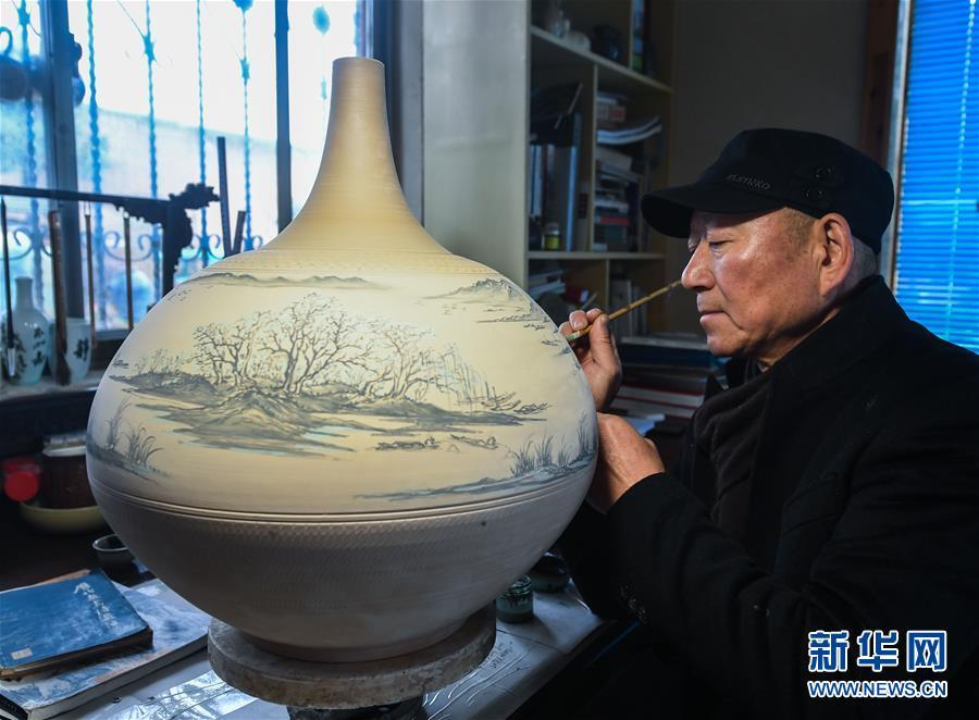 2月16日,陳新華在工作室中查看準備進行燒制的素坯。新華社記者 徐昱 攝