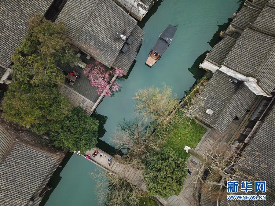2月25日,烏鎮(zhèn)景區(qū)內(nèi)春意萌動(dòng)(無人機(jī)拍攝)。 隨著氣溫升高,浙江省桐鄉(xiāng)市烏鎮(zhèn)景區(qū)春意萌動(dòng)。 新華社記者翁忻旸攝