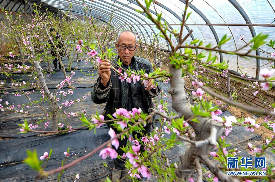 2月25日,果農(nóng)在邯鄲市邯山區(qū)碩果春農(nóng)業(yè)園大棚內(nèi)為桃花授粉。 隨著氣溫升高,河北省邯鄲市邯山區(qū)碩果春農(nóng)業(yè)園大棚內(nèi)的桃花競(jìng)相綻放。 新華社記者 王曉 攝