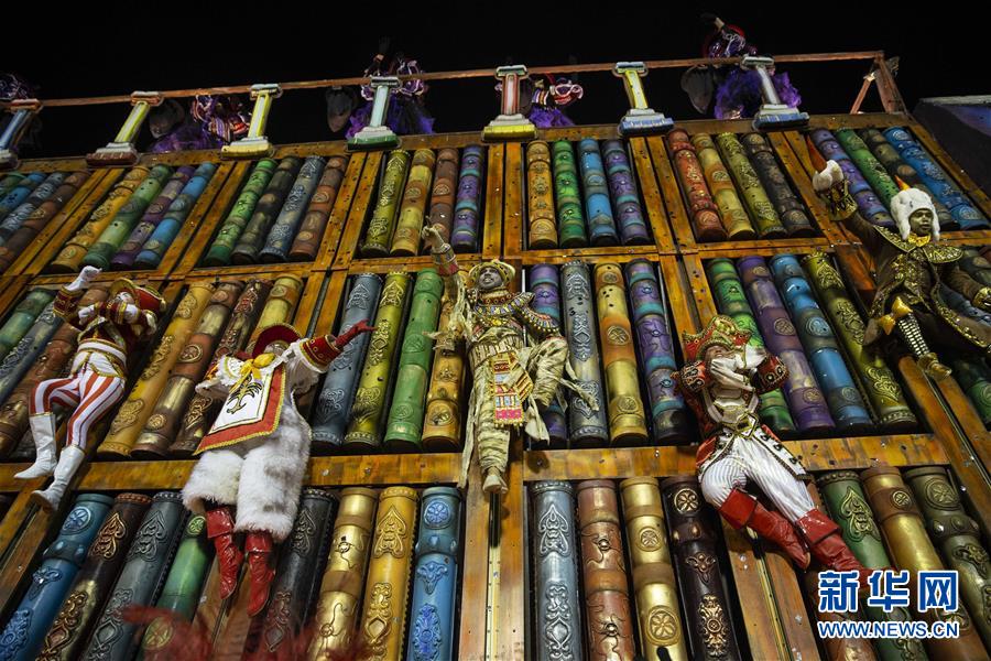 3月3日,在巴西里約熱內(nèi)盧,特級(jí)組桑巴舞校演員參加狂歡節(jié)游行。 3月3日晚,2019年里約熱內(nèi)盧狂歡節(jié)特級(jí)組桑巴舞校在桑巴大道開始花車巡游表演。 新華社記者李明攝