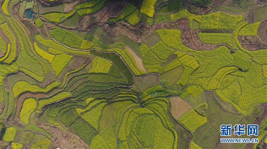 廣西融安縣東起鄉(xiāng)長(zhǎng)豐村的田園春色(3月10日無(wú)人機(jī)拍攝)。 近日,隨著氣溫持續(xù)回升,廣西融安縣境內(nèi)的油菜花開(kāi)放,春意盎然。 新華社記者 黃孝邦 攝
