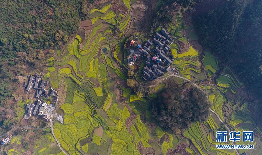 廣西融安縣東起鄉(xiāng)長豐村的田園春色(3月10日無人機(jī)拍攝)。 近日,隨著氣溫持續(xù)回升,廣西融安縣境內(nèi)的油菜花開放,春意盎然。 新華社記者 黃孝邦 攝
