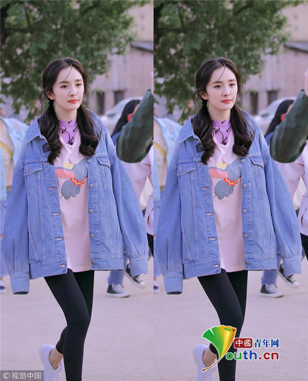 2019年3月12日,湖南長沙,楊冪錄制某綜藝節(jié)目路透曝光。她扎著雙馬尾甜美可愛似少女,穿oversized的牛仔外套和寬大T恤,戴著防曬的護袖,身材十分纖細苗條。錄制期間,楊冪氣質(zhì)明艷靈動活潑,元氣滿滿青春感爆棚。