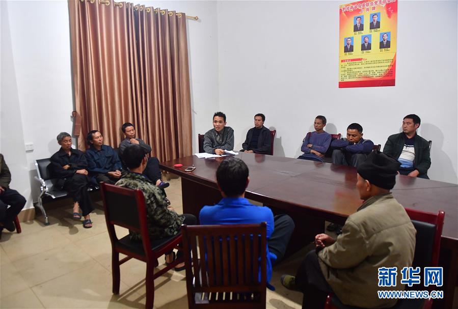 在黔桂烏英苗寨,水果種植合作社在開會,商量今年的工作計劃(3月27日攝)。