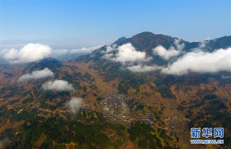 這是黔桂烏英苗寨春色(3月20日無人機(jī)拍攝)。