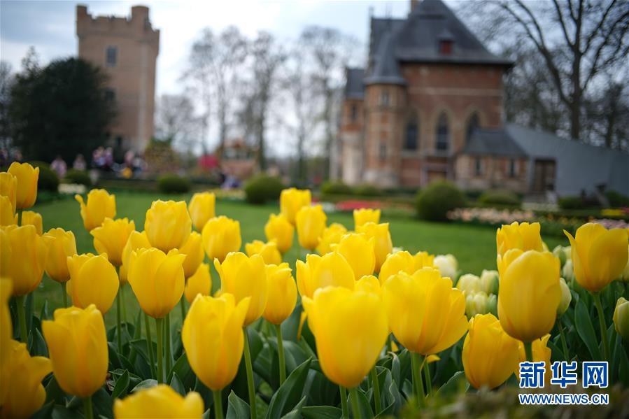這是4月6日在比利時布魯塞爾西郊的拜加登城堡拍攝的郁金香。 為期一個月的第16屆布魯塞爾國際花展于4月6日到5月5日在布魯塞爾拜加登城堡舉行,共展出約500種、超過100萬株鮮花。盛放的郁金香、水仙花、風(fēng)信子等花卉與古樸的城堡一起構(gòu)成了一幅美麗的畫卷,吸引了大批游客前來參觀。 新華社記者張鋮攝