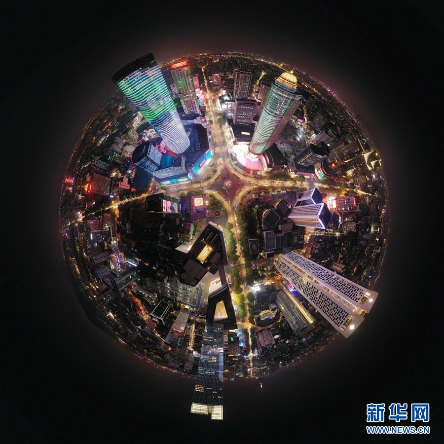 這是4月17日無人機(jī)拍攝的南京新街口夜景全景圖。 新華社記者 李博 攝