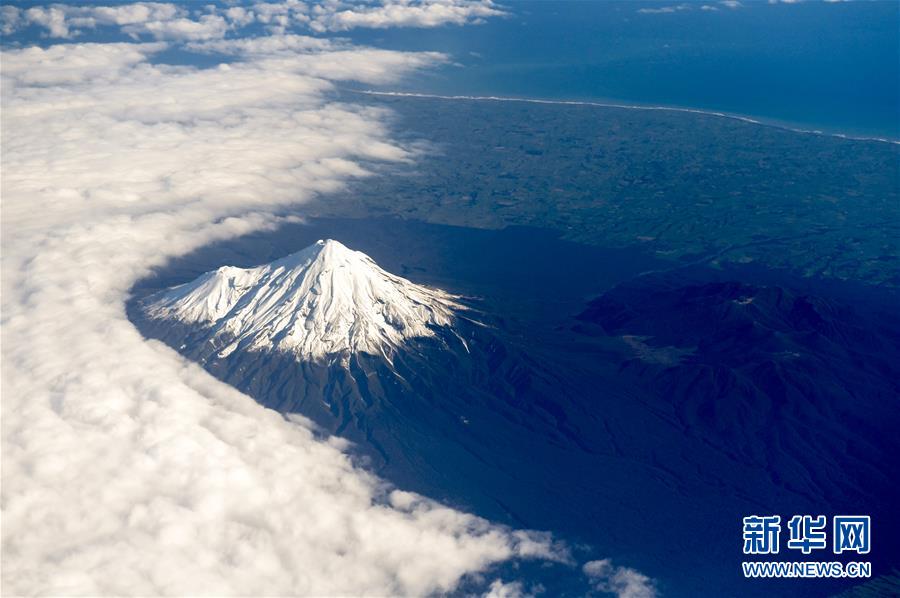 這是2018年6月8日從空中拍攝的新西蘭塔拉納基山。 新華社記者郭磊攝