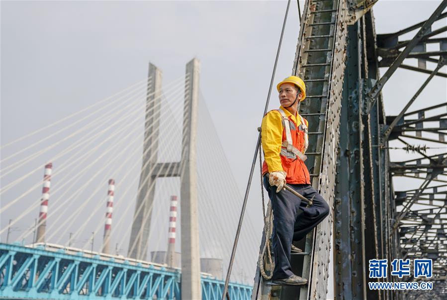 中國(guó)鐵路成都局有限公司重慶工務(wù)段53歲的橋隧工唐金華在白沙沱長(zhǎng)江大橋的作業(yè)點(diǎn)上望著新白沙沱長(zhǎng)江特大橋(4月23日攝)。 4月23日下午5點(diǎn)40分,隨著重慶白沙沱長(zhǎng)江大橋通行的最后一列客運(yùn)列車(chē)順利通過(guò),這座“服役”了59年的重慶首座長(zhǎng)江大橋進(jìn)入“退役”倒計(jì)時(shí)。4月24日后,所有列車(chē)將改線(xiàn)經(jīng)距白沙沱長(zhǎng)江大橋約100米的新白沙沱長(zhǎng)江特大橋通行,新橋“接力”老橋,運(yùn)輸能力將得到大幅提升。 白沙沱長(zhǎng)江大橋于1958年開(kāi)工,1960年通過(guò)首趟列車(chē),是繼武漢長(zhǎng)江大橋之后的第二座長(zhǎng)江大橋。 新華社記者 劉潺 攝