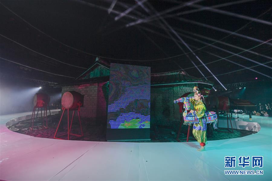 4月27日,表演結束后,模特在向觀眾致意。 當日,土樓光語國際時尚大秀在福建省南靖縣的土樓裕昌樓內舉行。這場融匯文化、時尚與旅游元素的大秀,通過傳統(tǒng)與時尚的有機融合,展現南靖土樓及文化的魅力和風采。 新華社記者魏培全攝
