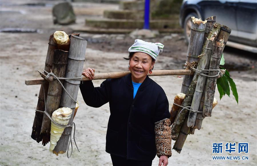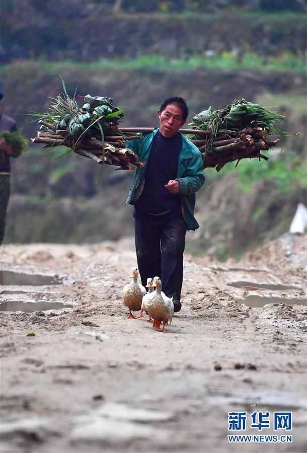 在黔桂烏英苗寨,村民勞作歸來(lái)(3月18日攝)。  新華社記者 黃孝邦 攝