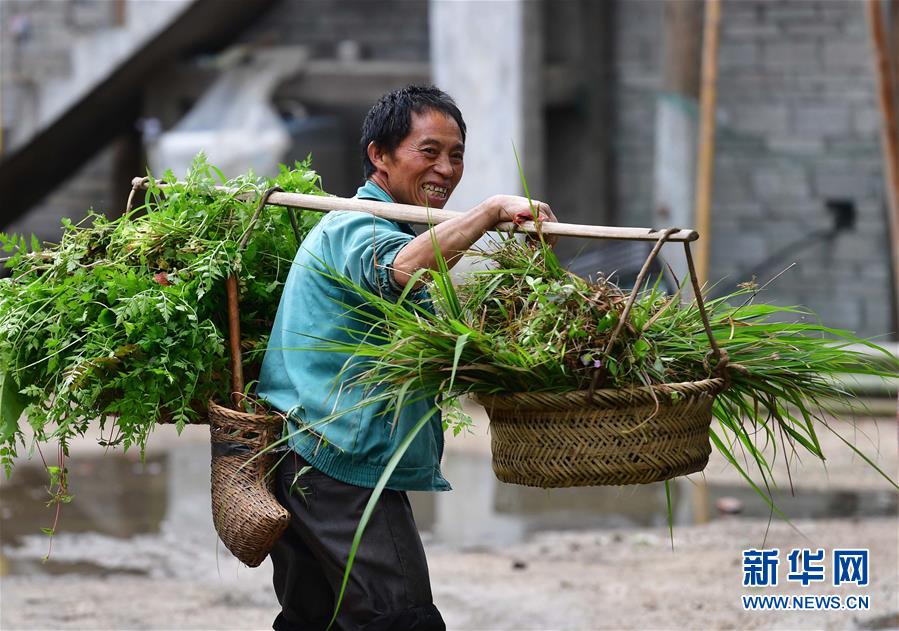 在黔桂烏英苗寨,村民勞作歸來(lái)(4月23日攝)。  新華社記者 黃孝邦 攝