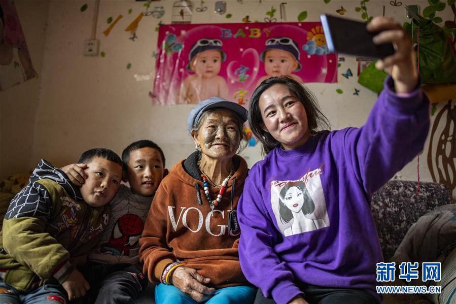 75歲的“文面女”李文仕(右二)在與孩子們自拍(4月21日攝)。 70年,在人類歷史長河中不過彈指一瞬。但對獨(dú)龍族同胞來說,新中國的70年,他們仿佛進(jìn)入了時空穿梭隧道,滄桑巨變,千古未有。 他們告別苦難,迎來陽光。他們告別封閉,走向開放。他們告別原始落后,擁抱現(xiàn)代文明。最近,他們宣告整族脫貧,實(shí)現(xiàn)“千年一躍”。 新華社記者 江文耀 攝