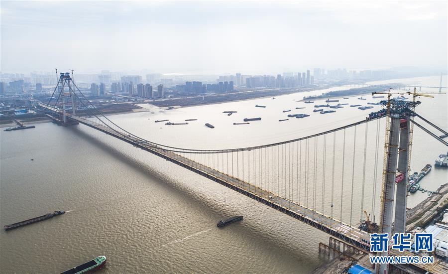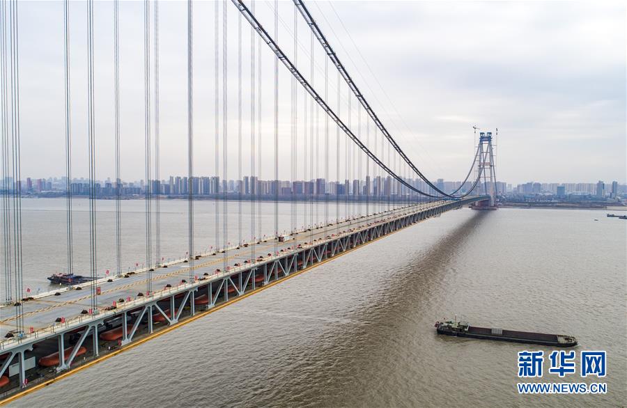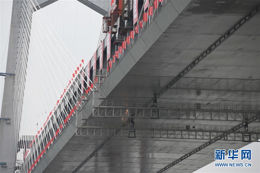 當(dāng)日,隨著最后一節(jié)鋼梁吊裝到位,由中鐵大橋院設(shè)計(jì)、中鐵大橋局施工的武漢楊泗港長(zhǎng)江大橋順利合龍,標(biāo)志著這座世界最大跨度雙層公路懸索橋主體工程完工,進(jìn)入橋面鋪裝階段。 武漢楊泗港長(zhǎng)江大橋是武漢市內(nèi)建設(shè)的第十座長(zhǎng)江大橋,也是長(zhǎng)江上首座雙層公路大橋。 新華社記者 肖藝九 攝