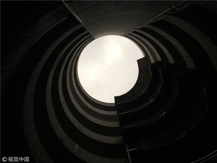2018年12月11日,重慶紅旗河溝汽車站辦公大樓。八層的圓筒型轉轉樓,站在樓里往上望,可以看見碗口大的天空。圖片作者:尋常