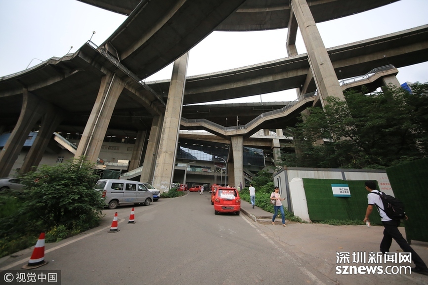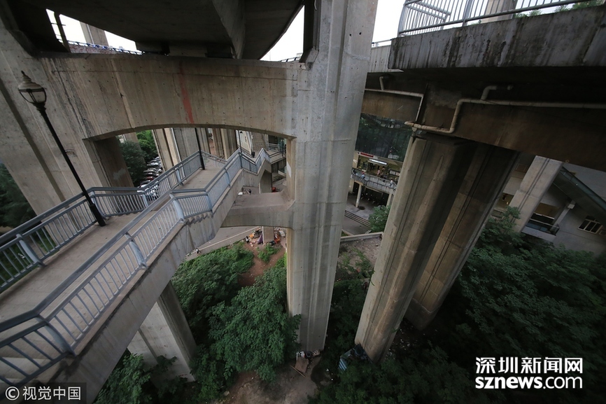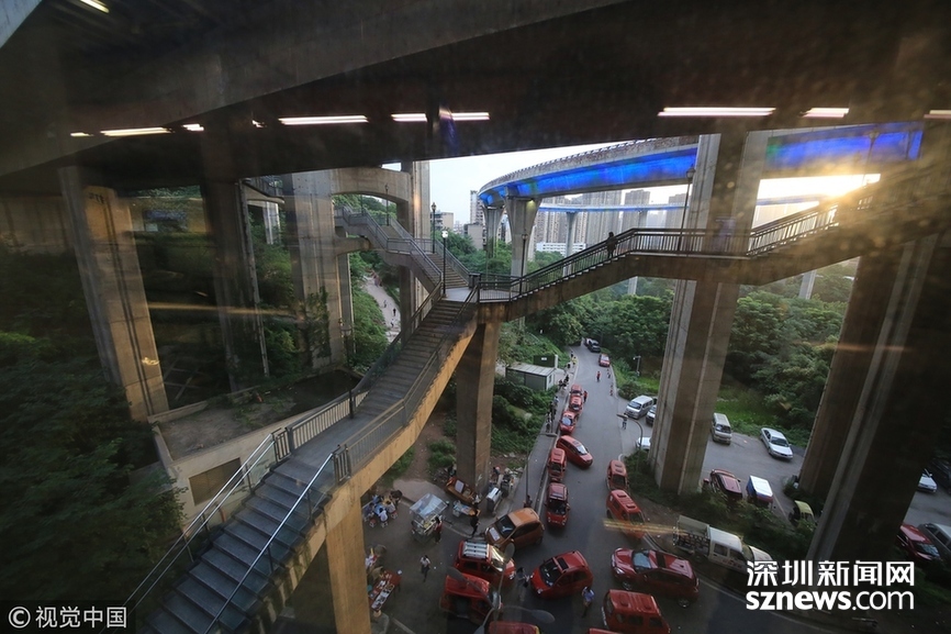 深圳新聞網訊 2018年5月29日,重慶,魔幻重慶又雙叒叕放大招!還有一個獨特的亮點,重慶軌道交通3號線銅元局站,出口由一段長梯銜接上方立交橋和下方的路面,與全國最高城市立交橋蘇家壩立交組成了獨特風景,許多游客專門趕來拍照。